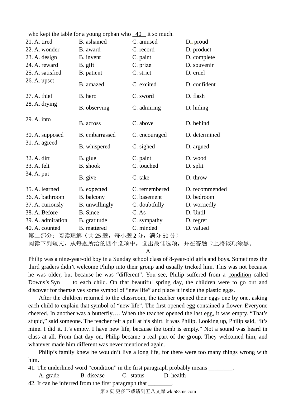 2014-2015年高三上学期英语第一次月考试卷及答案(10月).doc_第3页