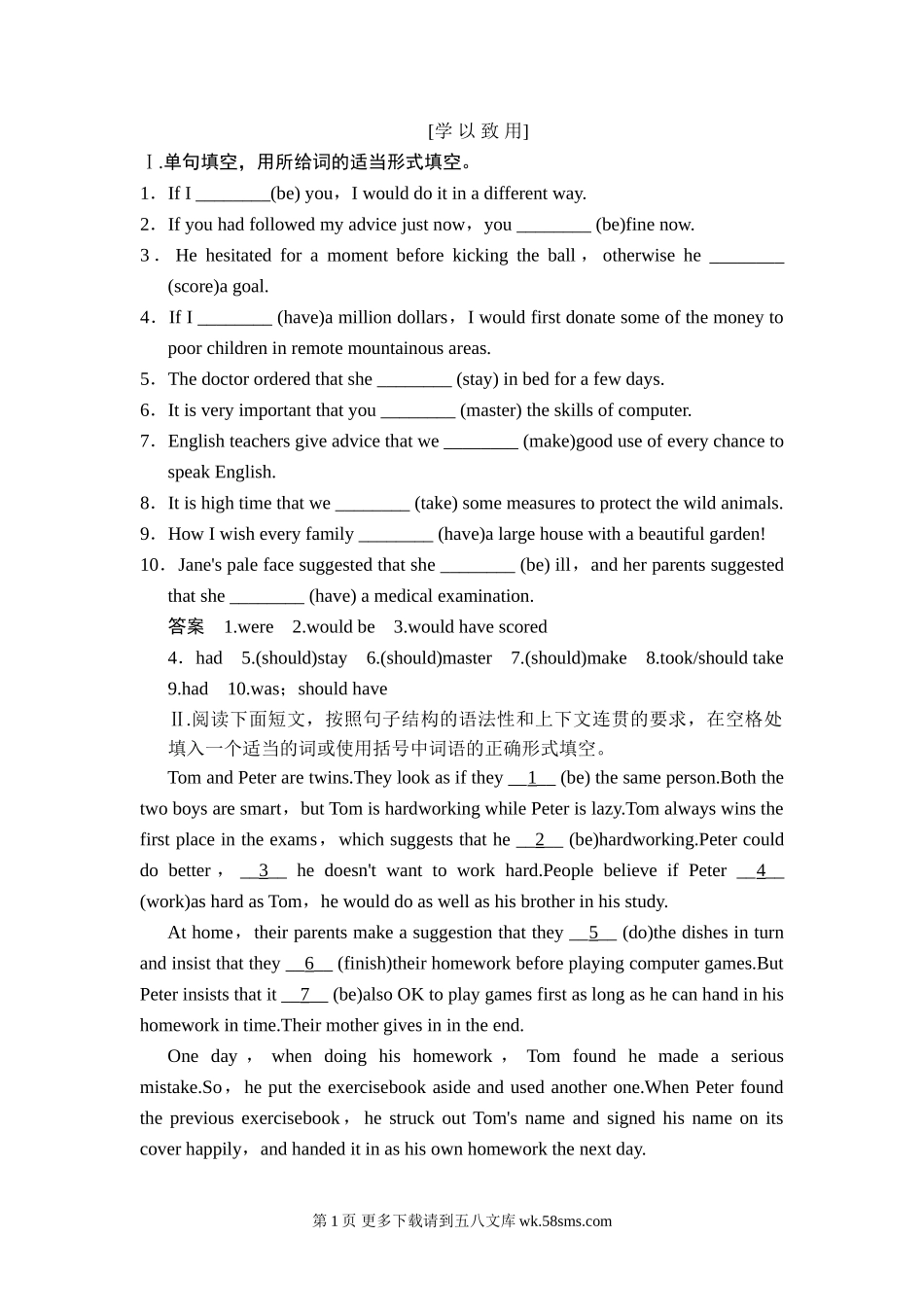 [学以致用]Ⅰ.单句填空,用所给词的适当形式填空。1.IfI________(be)you,Iwoulddoitinadifferentway.2.Ifyouhadfollowedmyadvicejustnow,you________(be)finenow.3.Hehesitatedforamomentbeforekickingtheba...