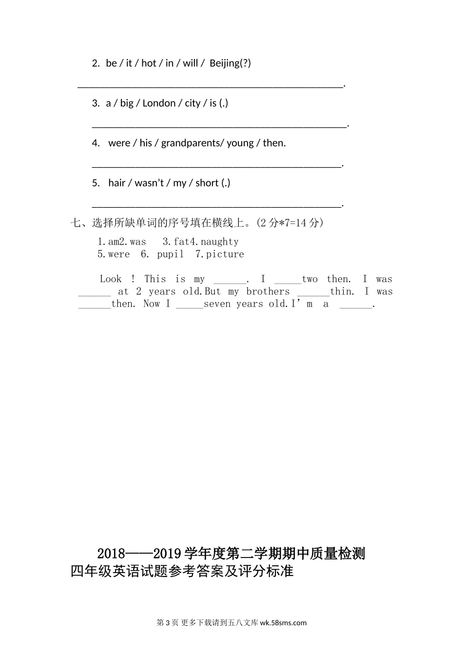 外研版2018-2019学年四年级英语下册期中试卷及答案.doc_第2页