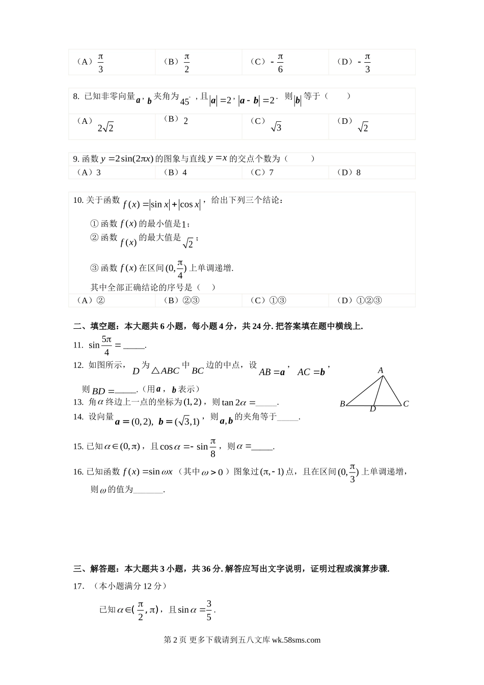 2016西城区高一数学期末试题及答案.doc_第2页