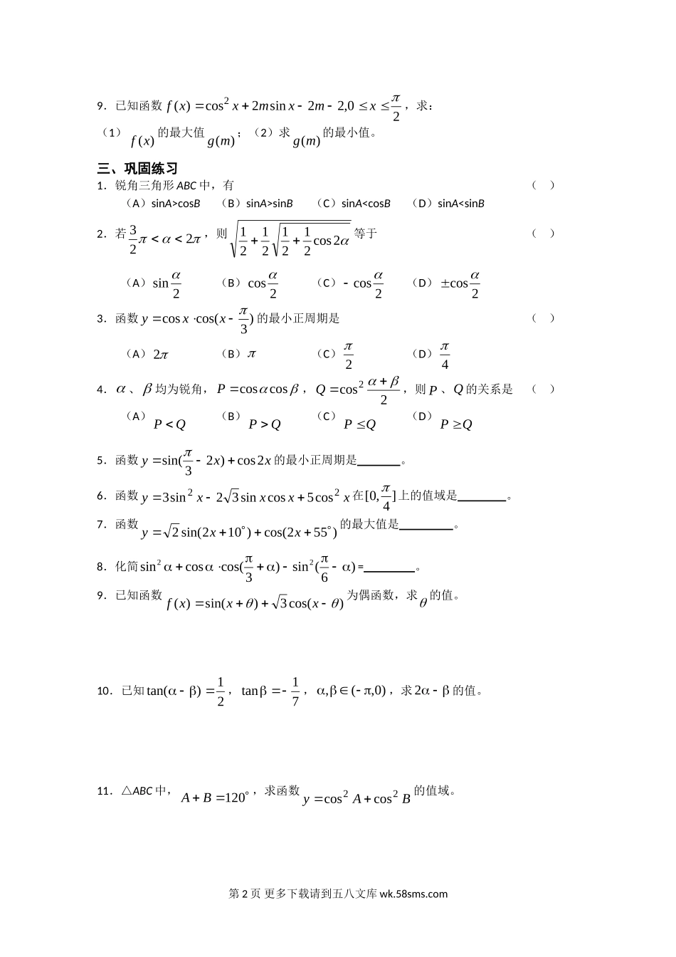 高一数学期末复习练习:三角恒等变换.doc_第2页