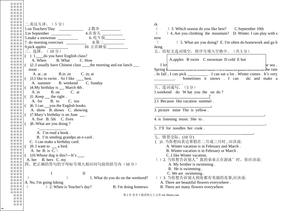 第二学期油田二中小学五年级英语期末考试试卷.doc_第2页