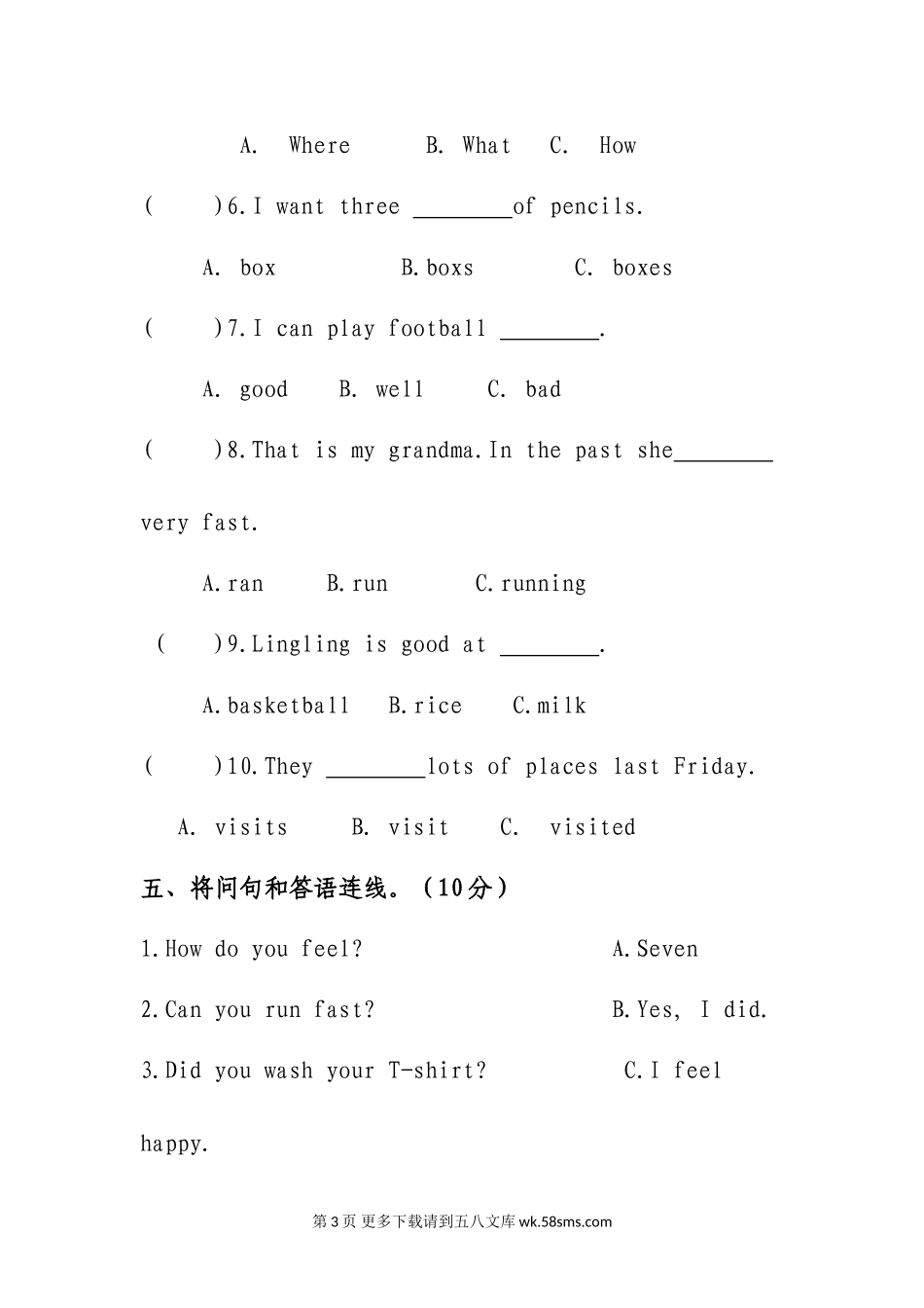 2016年外研版五年级英语上册期中试卷.doc_第3页