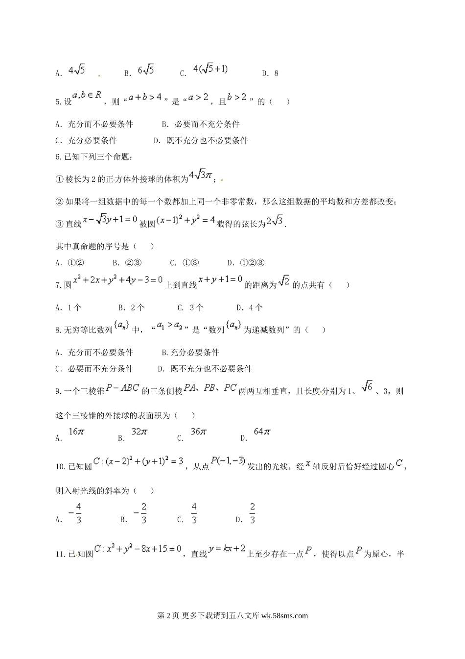 普宁市华侨中学2016-2017年高二数学(文)第二次月考试题及答案.doc_第2页