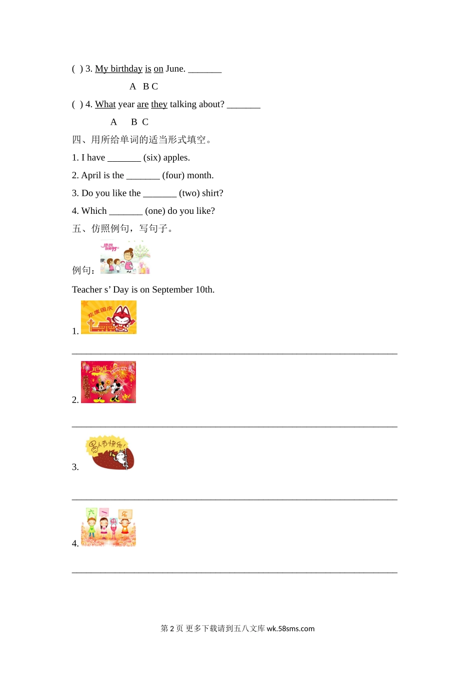 五年级下册Unit4 When is Easter PartA同步练习题及答案.doc_第2页