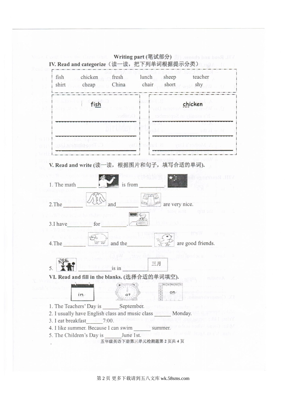 人教版小学英语五年级下册第三单元试题.doc_第2页
