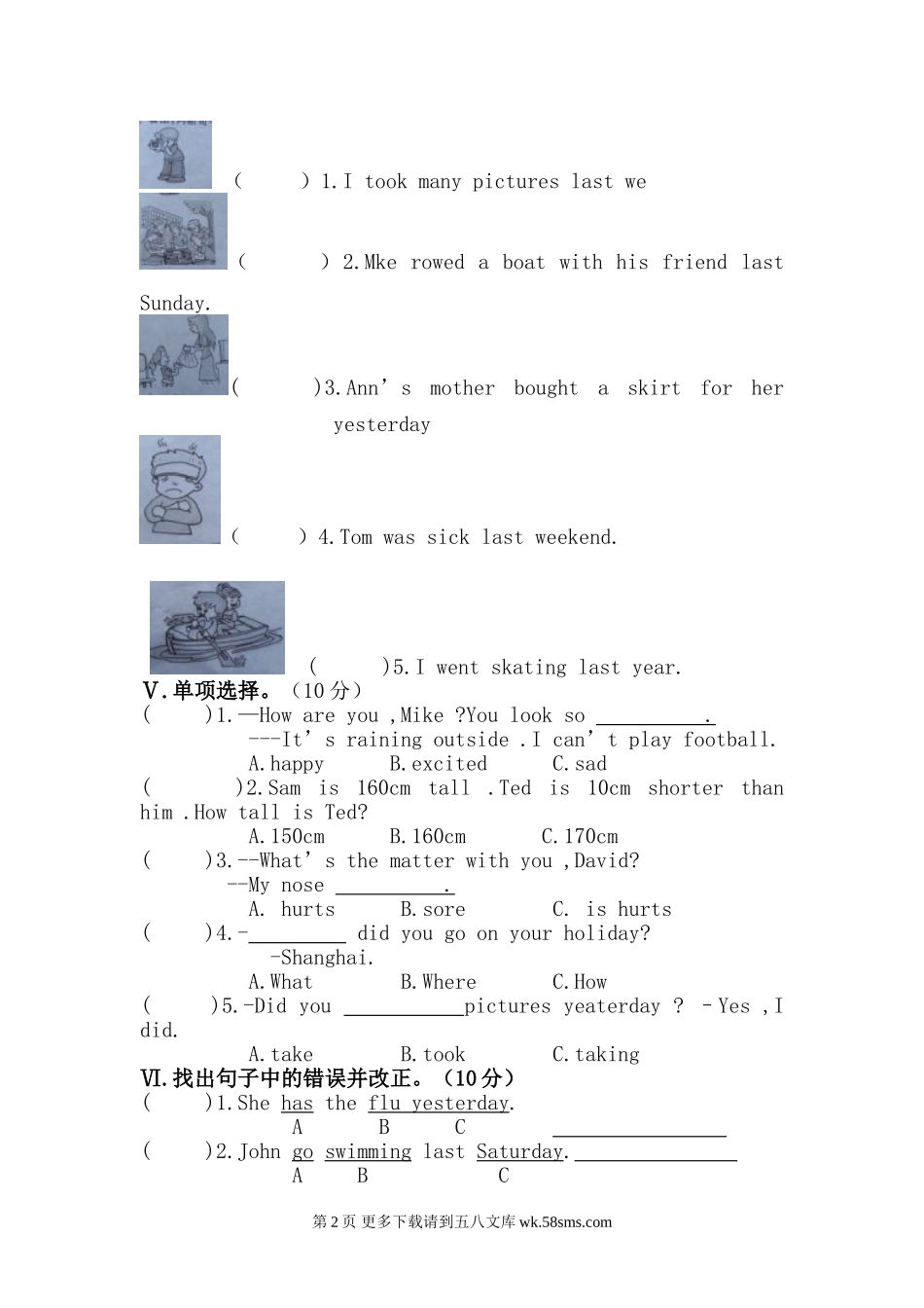 六年级下册期中试卷Ⅰ.选出你所听到的句子。(10分)()1.A.MikeistallerthanLee.LeeistallerthanSue.B.MikeisshorterthanLee.SueisshorterthanLee.C.MikeistallerthanLee,butshorterthanSue.()2.A.Shehadthef...