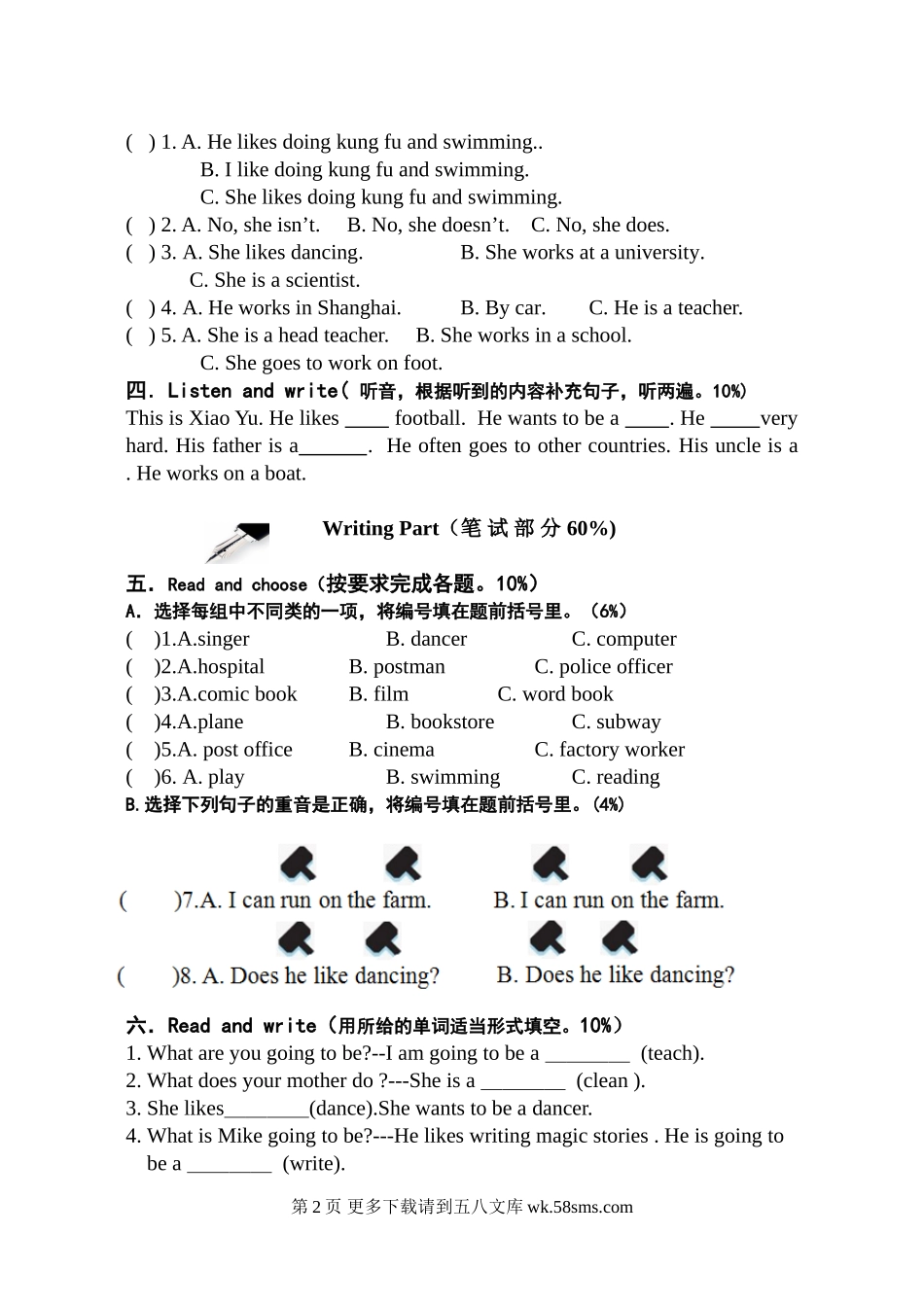 六年级英语Unit4—5单元测试卷及答案(三).doc_第2页