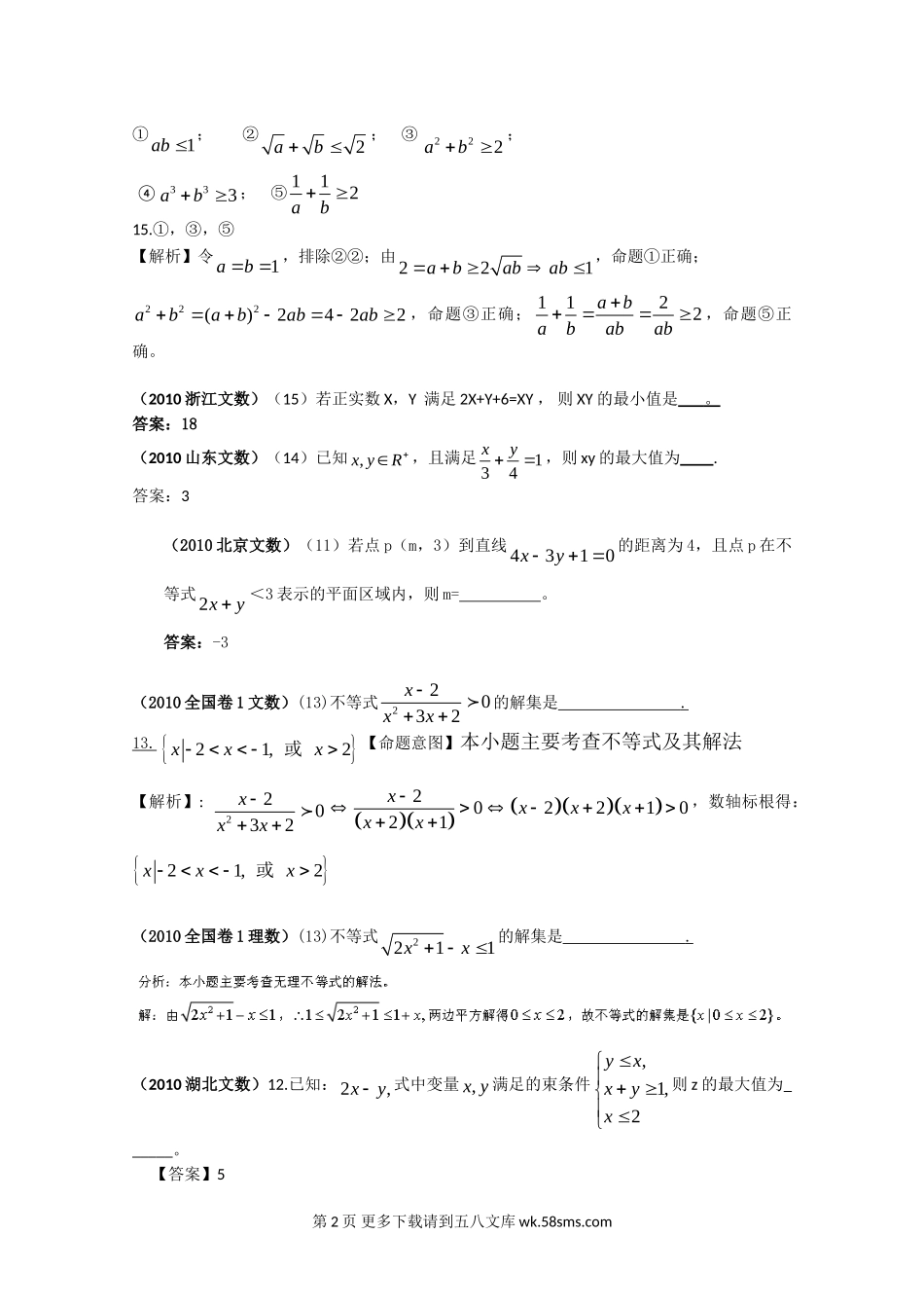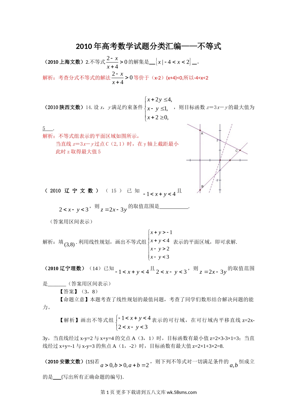2010年高考数学试题分类汇编——不等式(2010上海文数)2.不等式204xx的解集是24|xx。解析:考查分式不等式的解法204xx等价于(x-2)(x+4)<0,所以-4