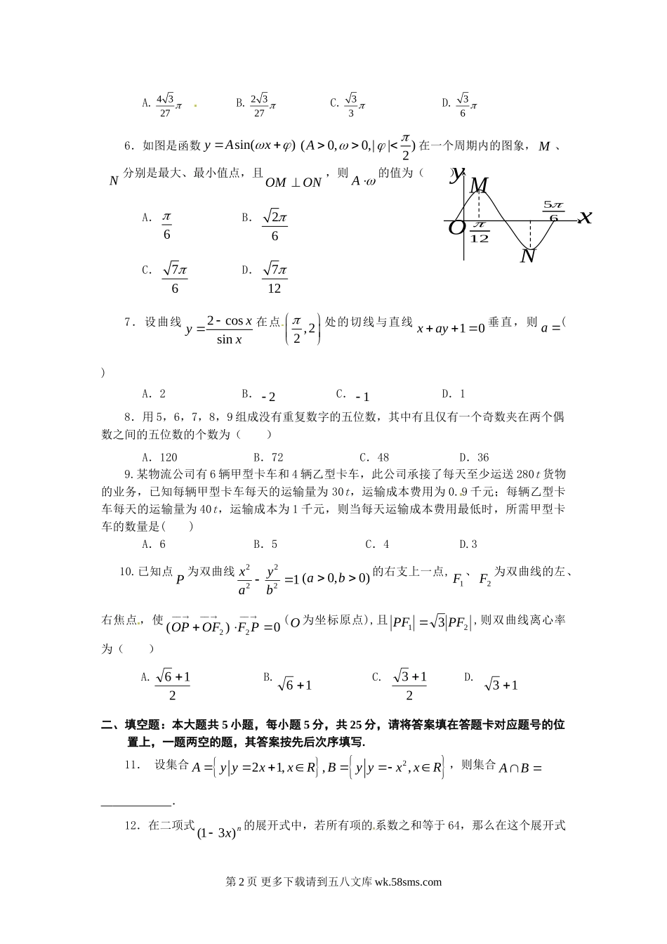 高考数学考前冲刺理科试题及答案.doc_第2页