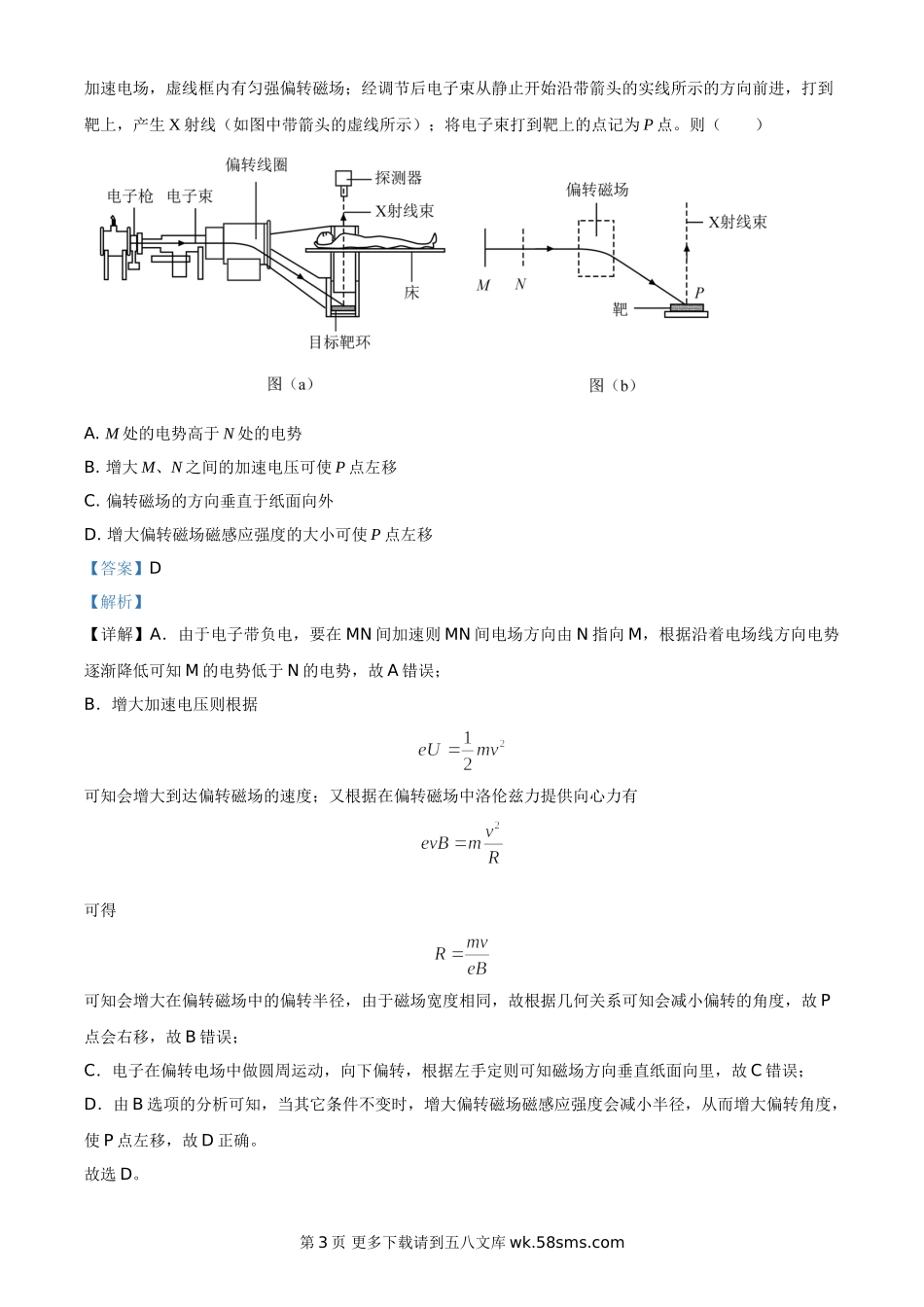 2020年普通高等学校招生全国统一考试理科综合能力测试二、选择题:1.管道高频焊机可以对由钢板卷成的圆管的接缝实施焊接。焊机的原理如图所示,圆管通过一个接有高频交流电源的线圈,线圈所产生的交变磁场使圆管...