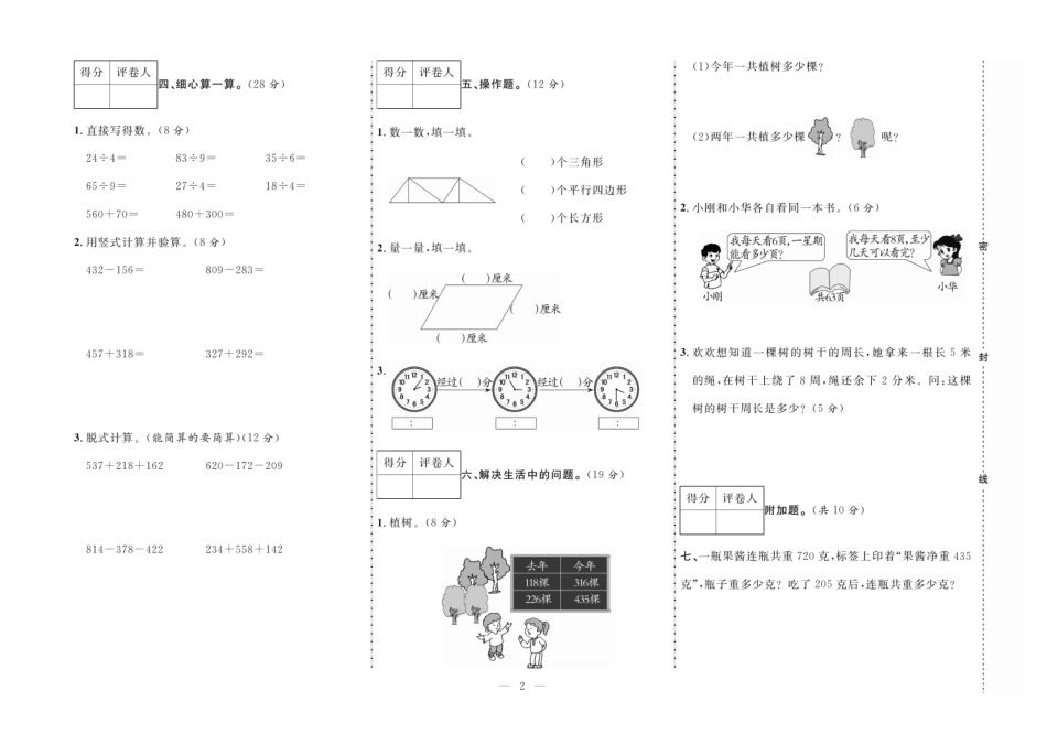 【小学二年级下册数学冀教版】期末首卷数学二年级下JJ.pdf_第3页