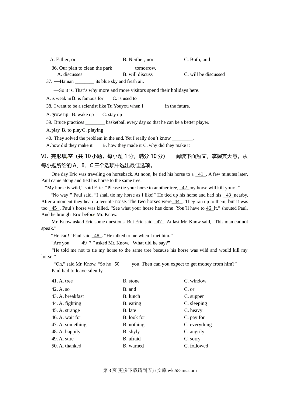 2016年海南省中考英语试卷及答案.doc_第3页