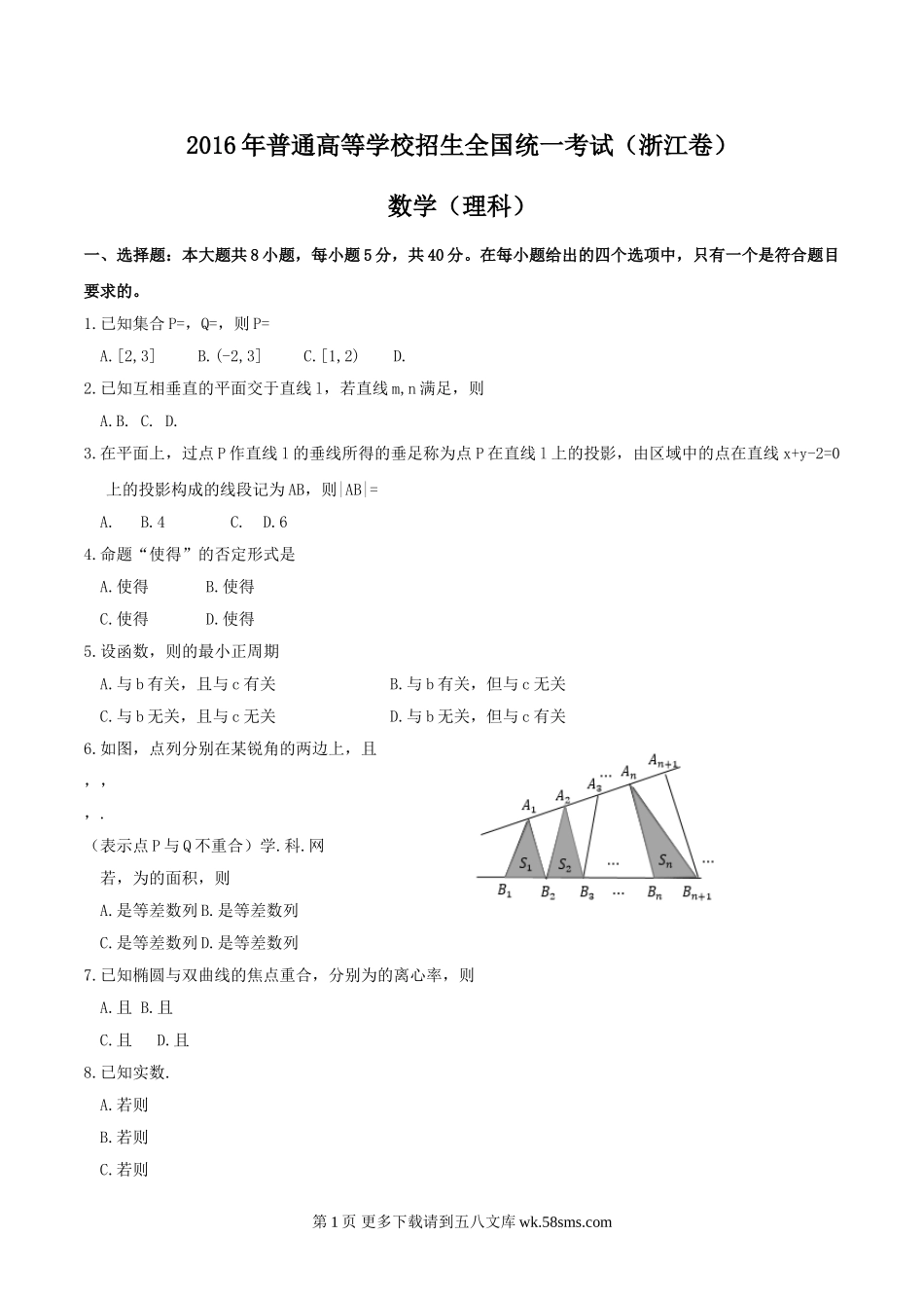 2016年浙江省高考理科数学试题及答案.doc_第1页
