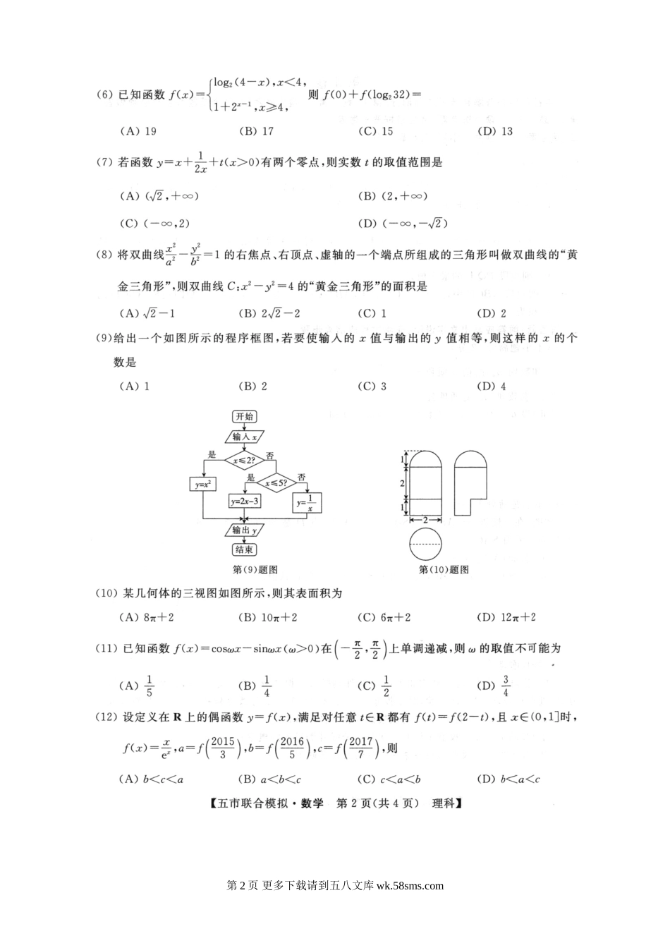 2016年高三5月广西五市联合模拟数学(理)试题及答案.doc_第2页