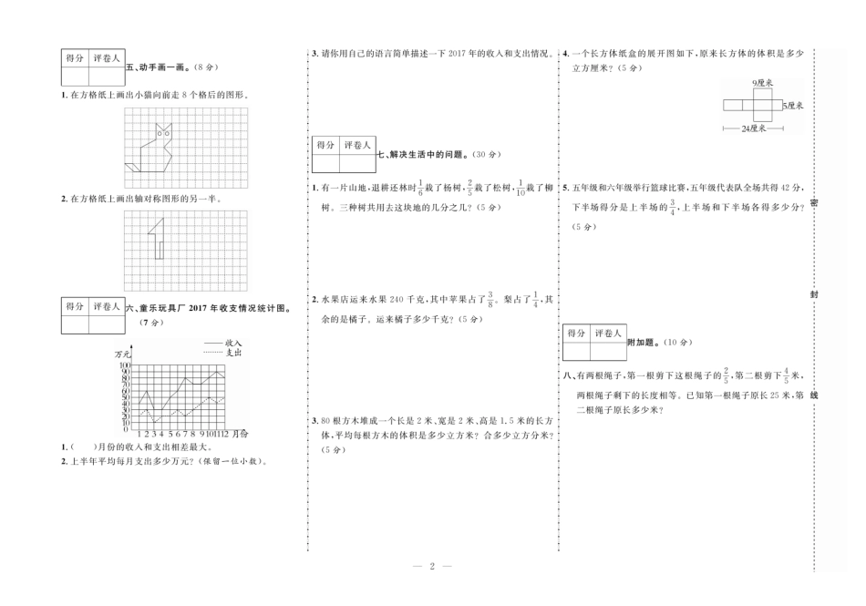 【小学五年级下册数学冀教版】期末首卷数学五年级下JJ.pdf_第2页