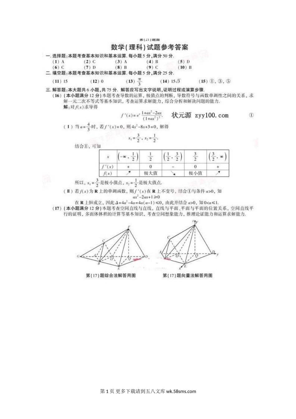 2011年安徽省高考理科数学答案.doc_第1页