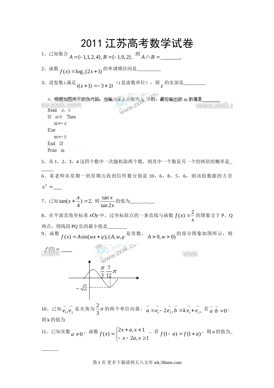 2011江苏省高考数学试卷.doc_第1页