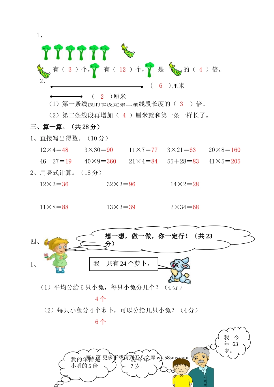 78元96元乘法学校姓名班级得分一、填一填。(每空2分,共20分)1、估一估,3辆这样的车大约能够坐(90)人。2、这是一张二年级三个班学生参加学校兴趣小组的表格,请你根据给出的信息填好表格,然后回答问题。舞...