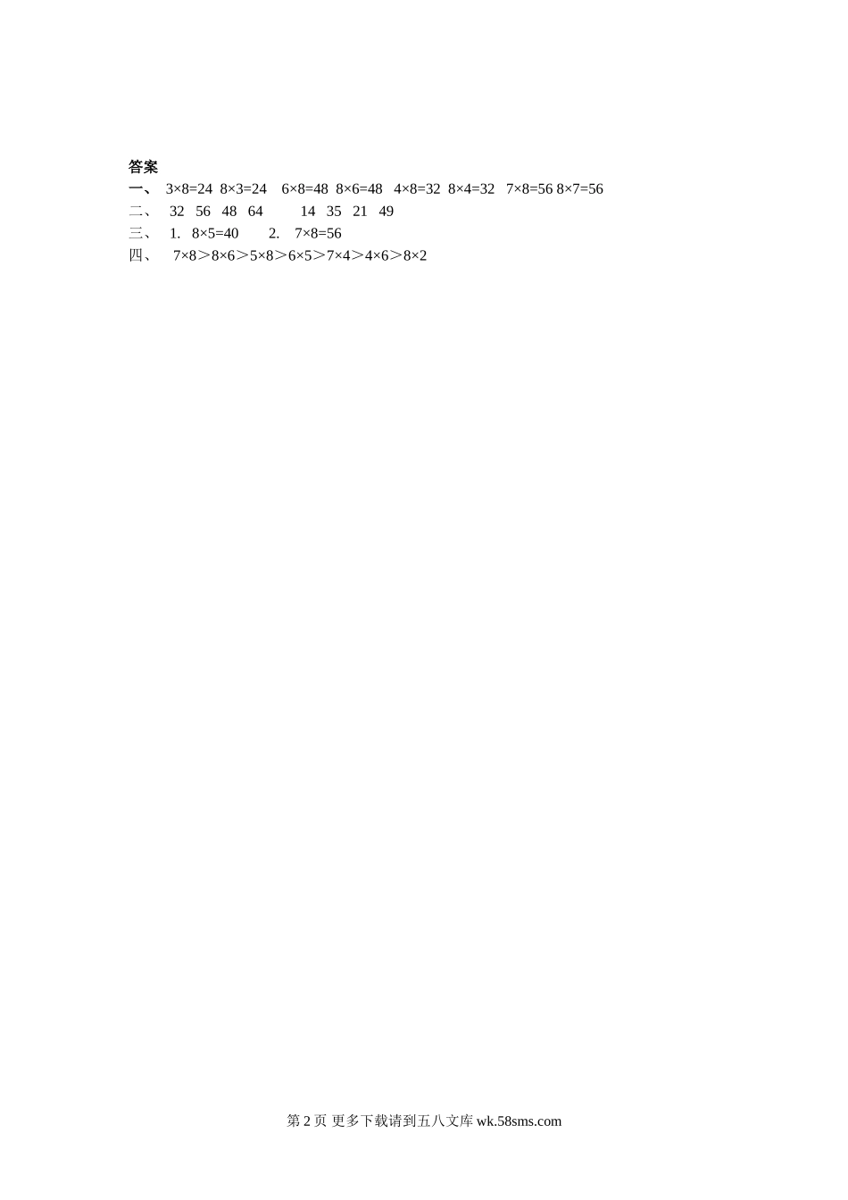 2016年二上7.2 8的乘法口诀练习题及答案.doc_第2页