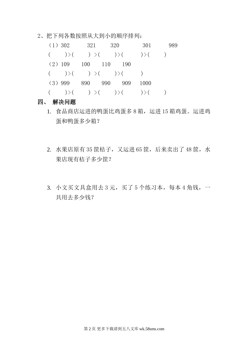 二年级下册第七单元三位数的读、写法练习题.doc_第2页