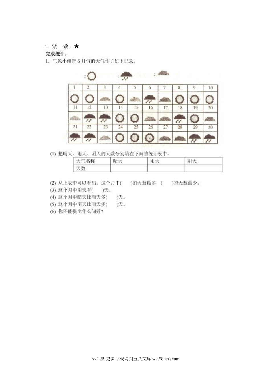 一、做一做。★第1页更多下载请到五八文库wk.58sms.com二.填一填、画一画。★★小芳调查了班上一部分同学的身高情况(单位:厘米),分别为:13214513714913315015414814513112812513713914715914315313614712613...