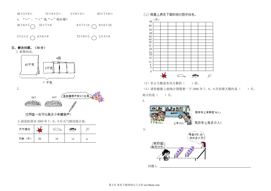 人教版二年级数学下册期末考试试卷.doc_第3页