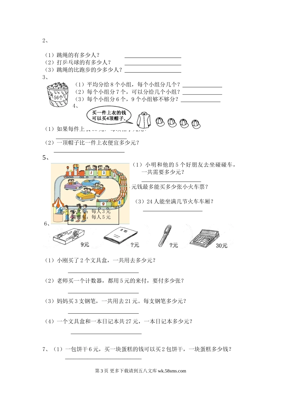 苏教版二年级数学上册期末复习卷.doc_第3页