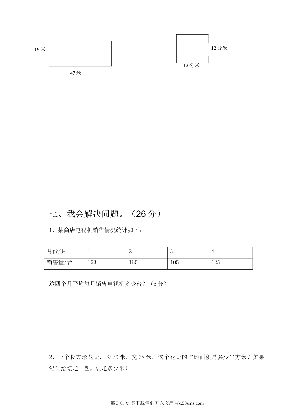2013学年第二学期三年级数学期末试卷及答案.doc_第3页