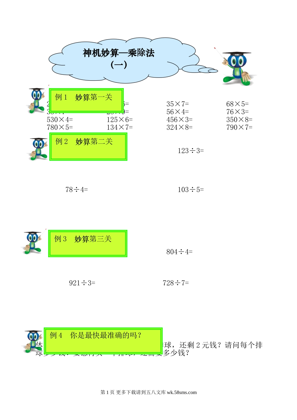 25×4=19×6=35×7=68×5=38×7=28×9=56×4=76×3=530×4=125×6=456×3=350×8=780×5=134×7=324×8=790×7=96÷3=123÷3=78÷4=103÷5=306÷3=804÷4=921÷3=728÷7=体育老师带了350元上街,买了4个排球,还...