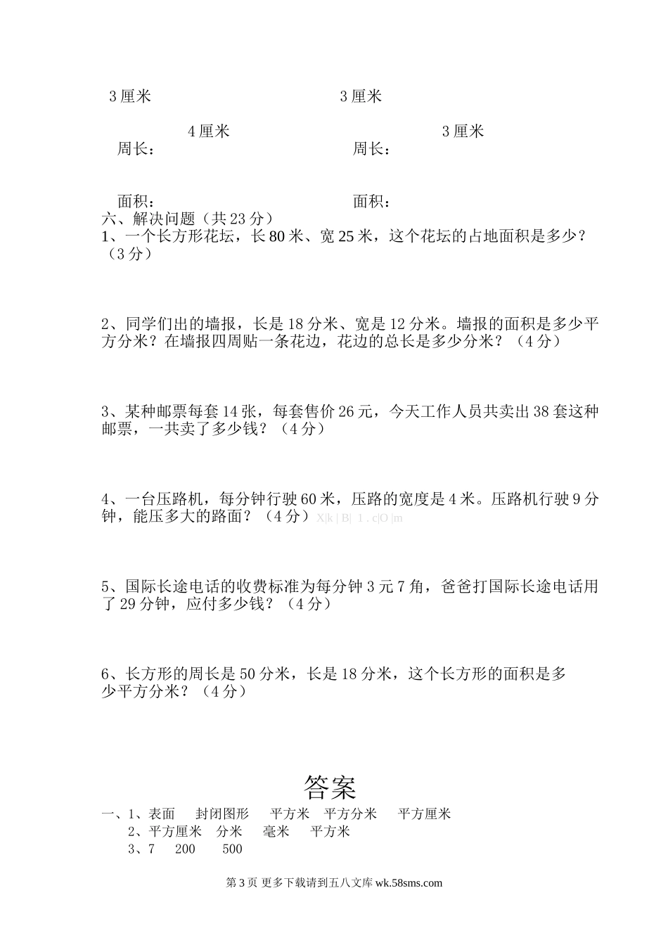 三年级数学下册第三次月考试卷及答案.doc_第3页