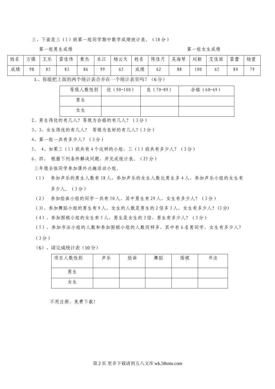 三年级数学下册第三单元复式统计表测试题.doc_第2页