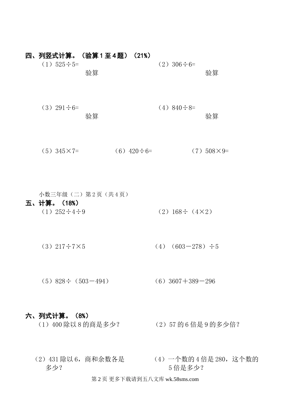 苏教版小学三年级数学下册练习题2.doc_第2页
