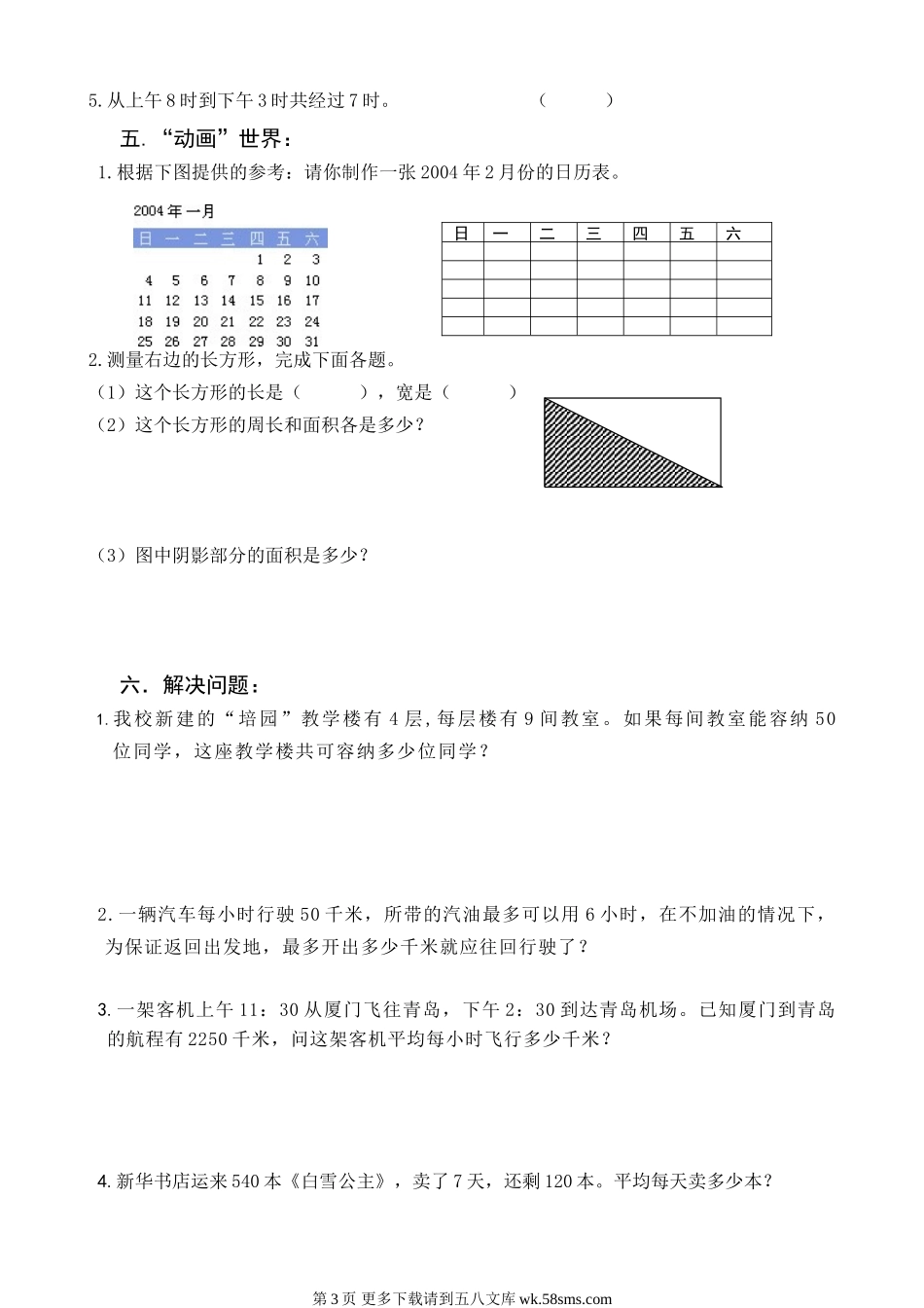 小学三年级数学思维班练习试卷三.doc_第3页