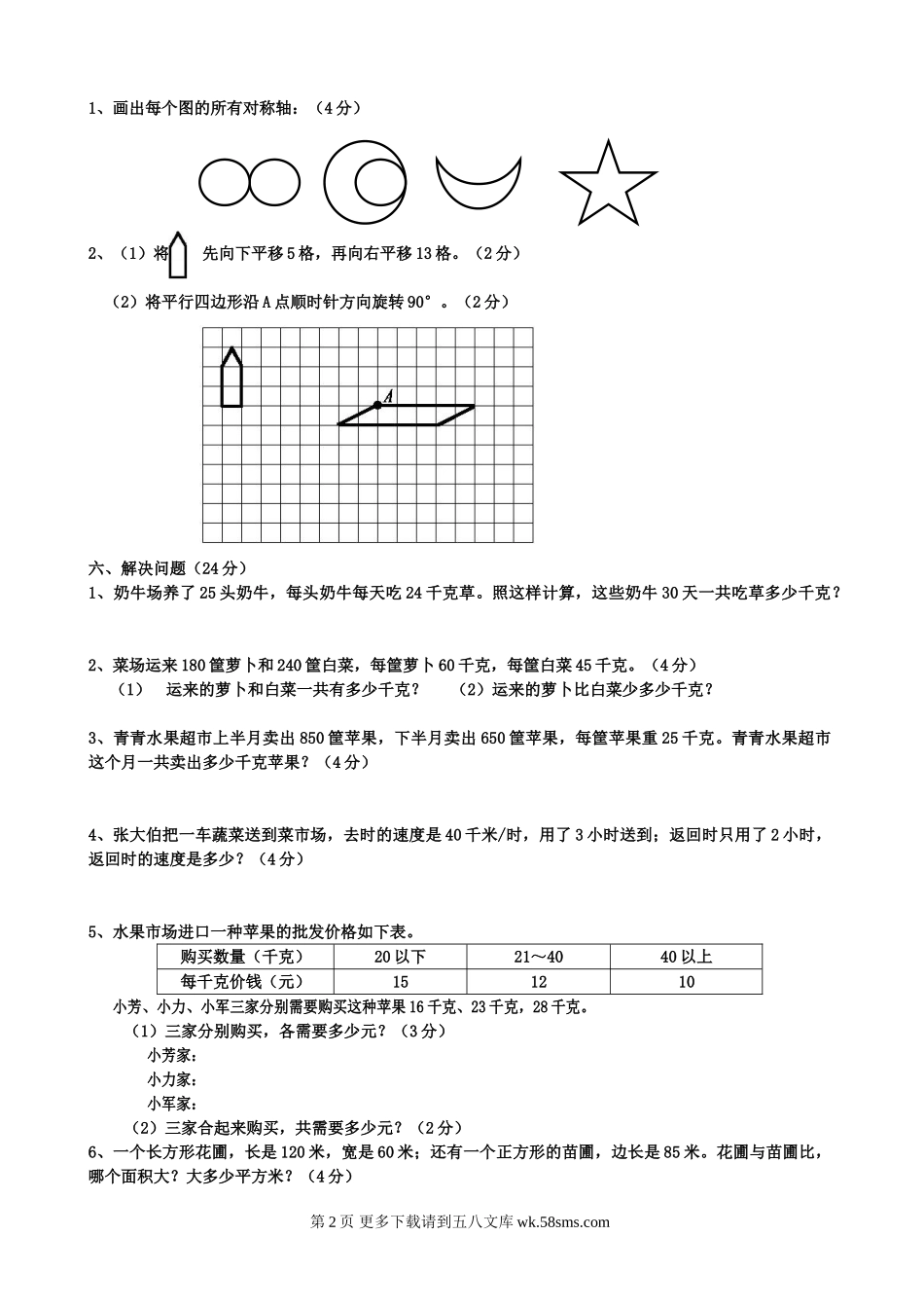 2018年苏教版四年级数学下册第一次月考试卷2.doc_第2页