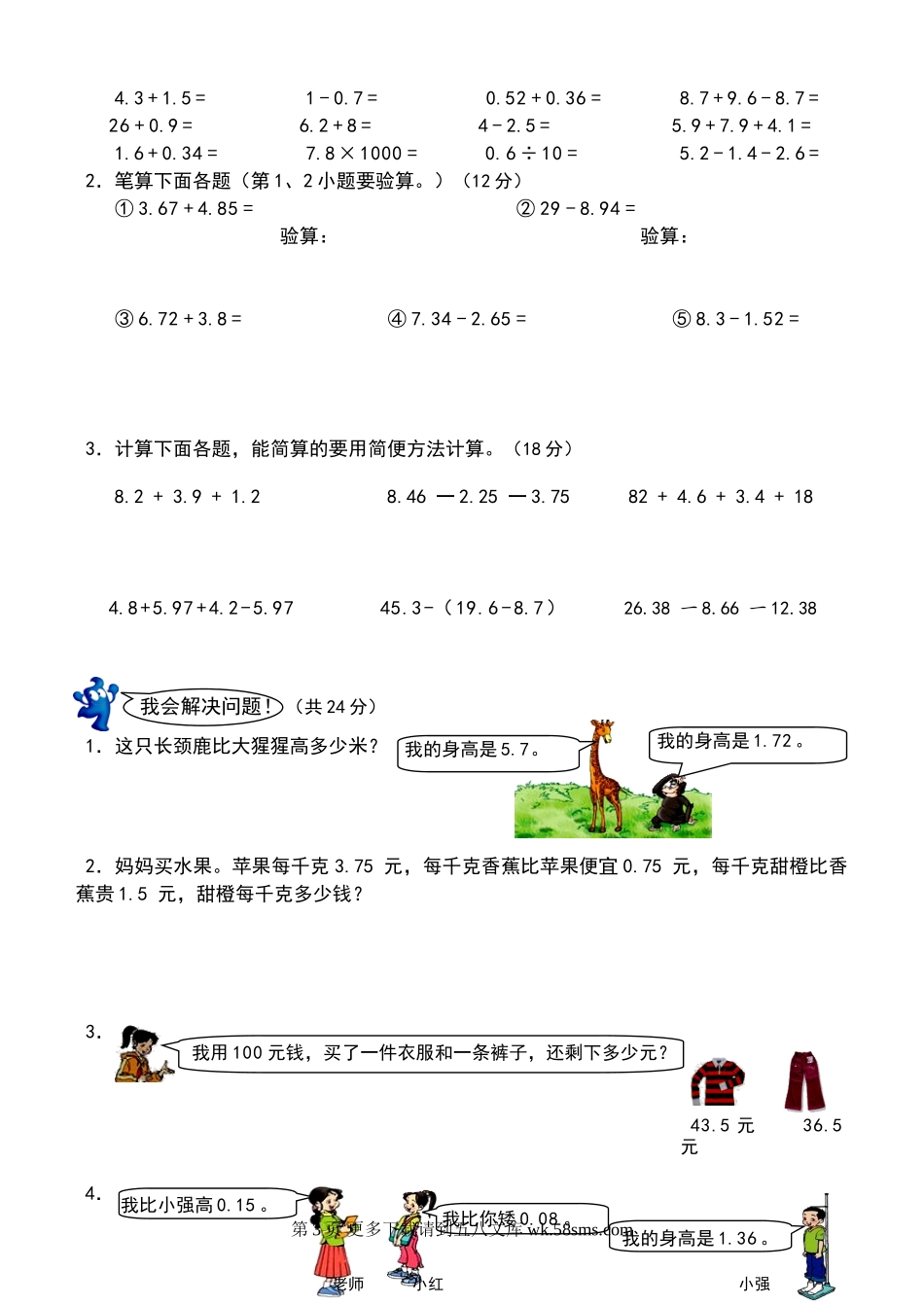 2017—2018年下期小学四年级数学第56单元检测题.doc_第3页