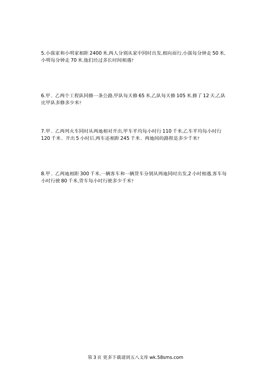 第六单元测试卷一、填空题。1.一列货车和一列客车同时在早晨6时出发,货车从甲地开往乙地,平均每小时行45千米;客车从乙地开往甲地,平均每小时行60千米,早晨9时两车相遇。两车行驶的时间是()小时,求货车行驶的路程,...