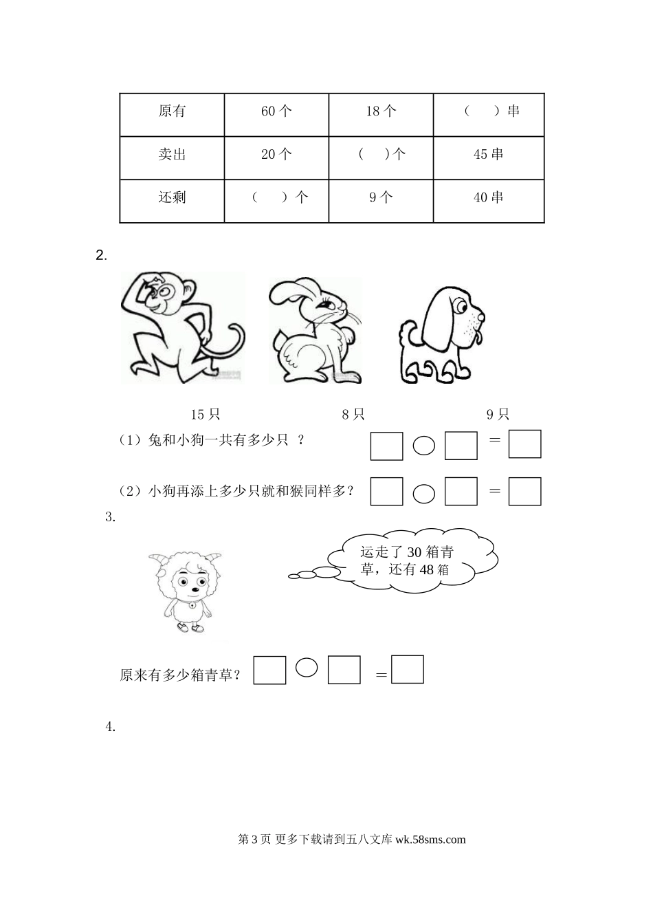 洪泽县高良涧镇中心小学2015年一年级数学下册期中试卷.doc_第3页