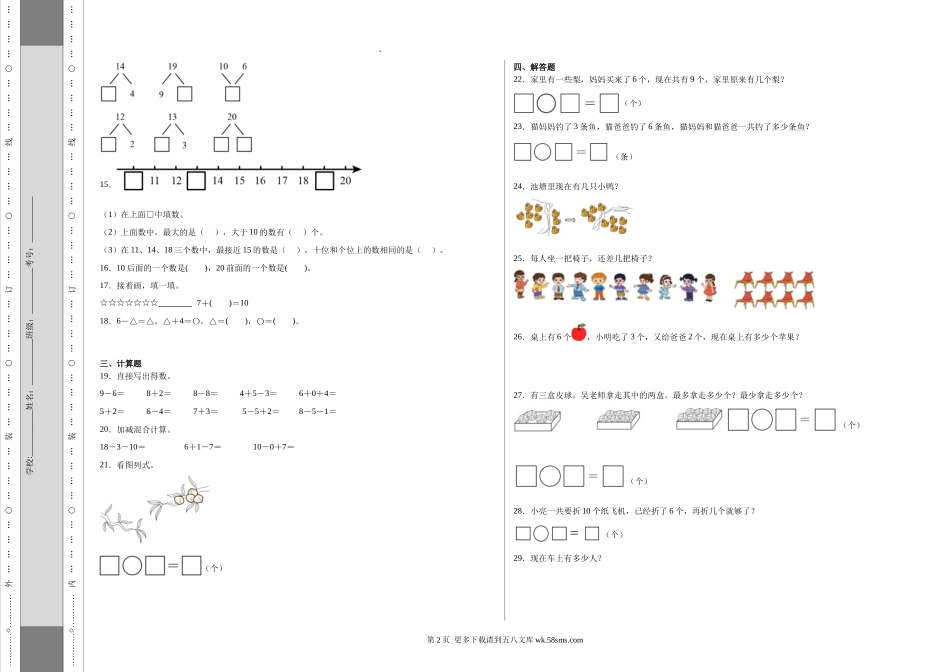 人教版2024-2025小学一年级数学上册期中测试.docx_第2页
