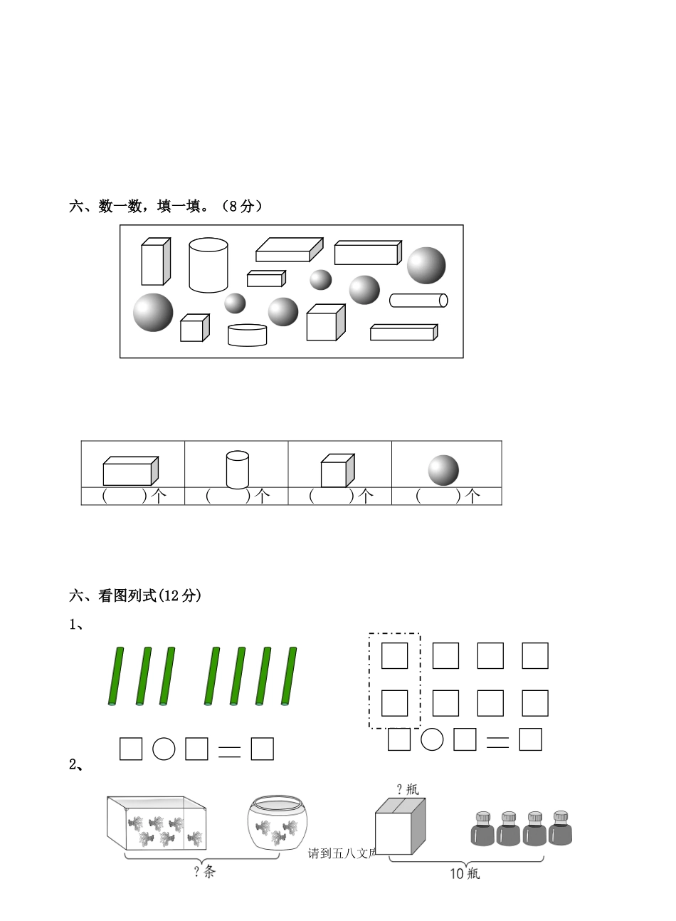苏教版小学一年级数学第一学期期中质量检测题检测内容:第2页至P58页检测时间:60分钟检测总分:100分(请教师逐项读题)一、看图写数(4分)二、比一比(12分)1、在最高的下面里画“√”,最矮是下面画“○”。(...