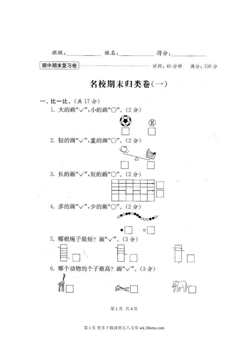 苏教版一年级数学上册期末试卷特别说明:本试卷为(2015~2016)最新苏教版教材配套试卷。全套试卷共17份(含答案)。试卷内容如下:1.名校期末归类卷(一)9.期末归类一2.名校期末归类卷(二)10.期末归类二3.名...