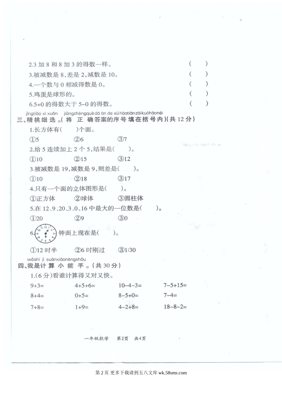 兴义市2015.1人教版一年级数学上册期末试题.doc_第2页