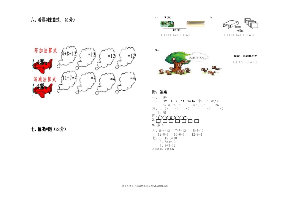 永兴乡中心学校2016年秋一年级数学期末试卷及答案.doc_第2页