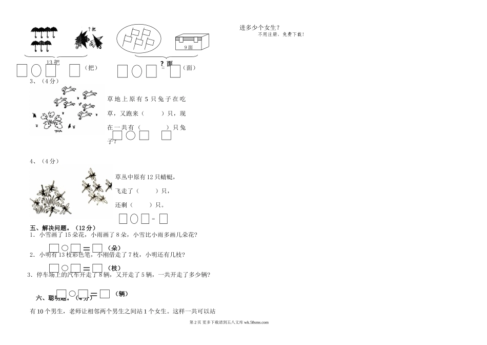 云龙小学下学期一年级数学第一次月考试卷.doc_第2页