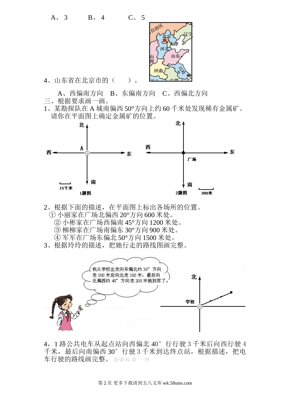 小学数学四年级下册第二单元位置与方向试题6套.doc_第2页