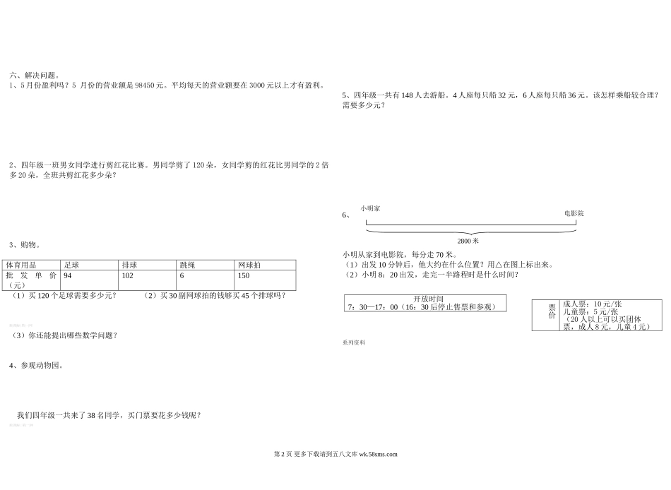 西师版四年级数学上册期末试卷.doc_第2页