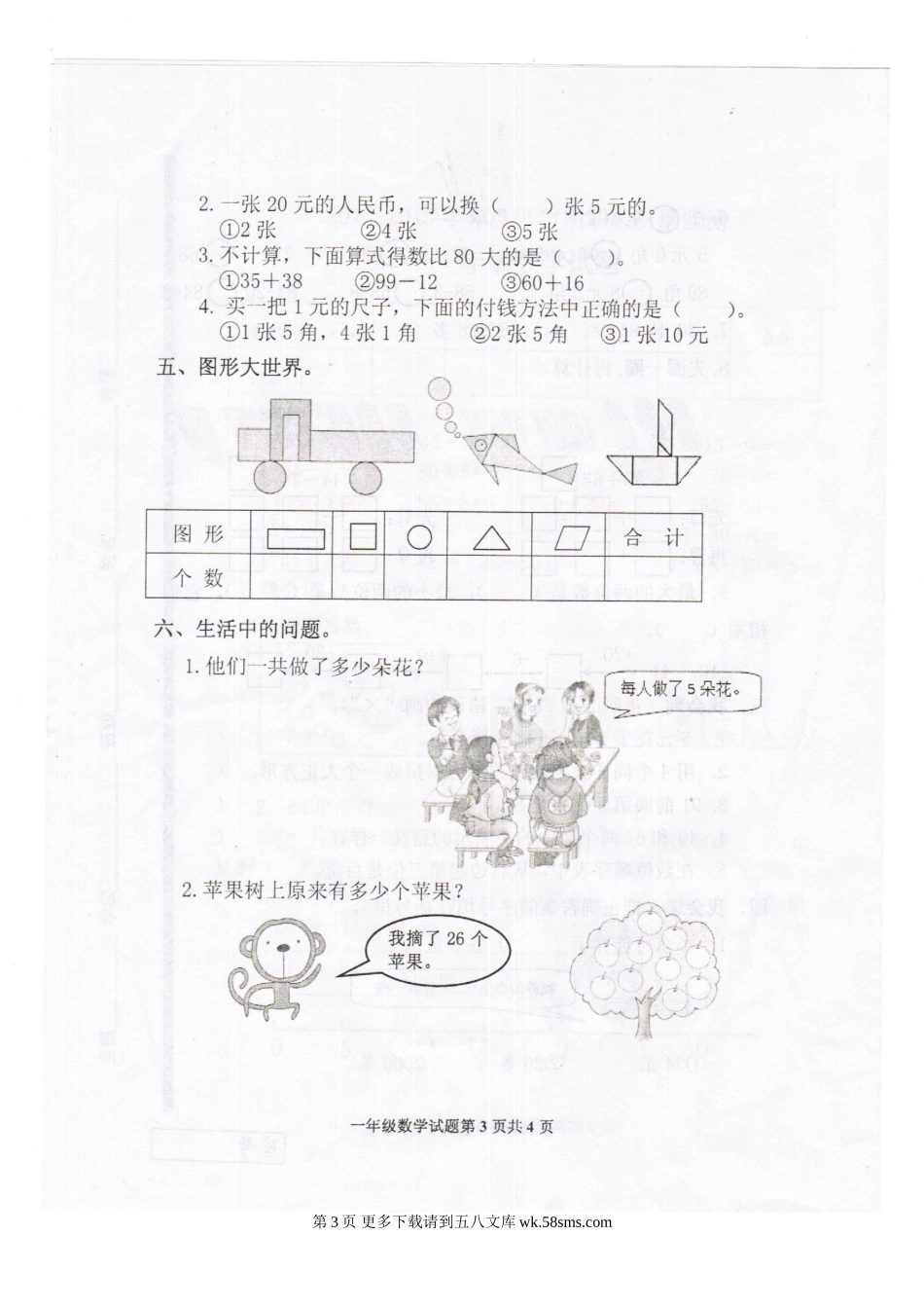 2015年下学期最小学一年级数学期末试题.doc_第3页