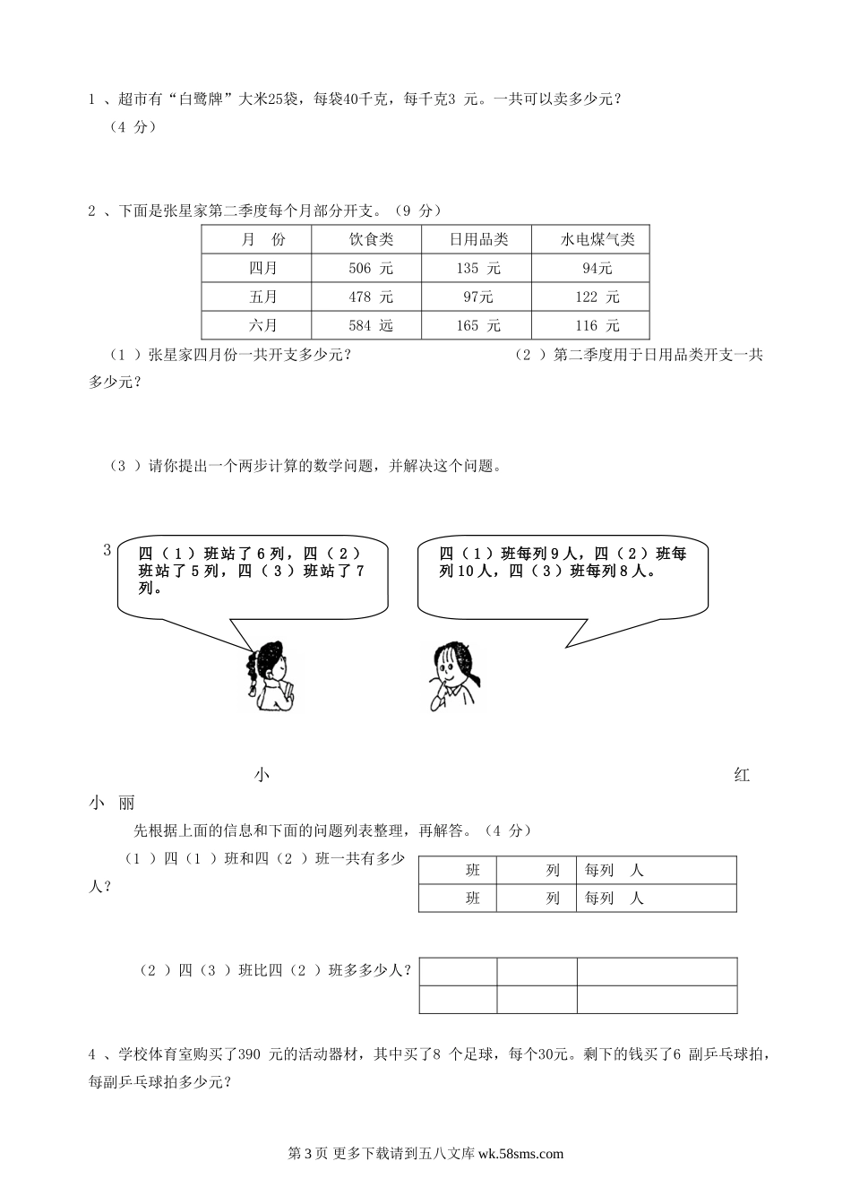 四年级数学上册第七、八、九单元测试卷.doc_第3页