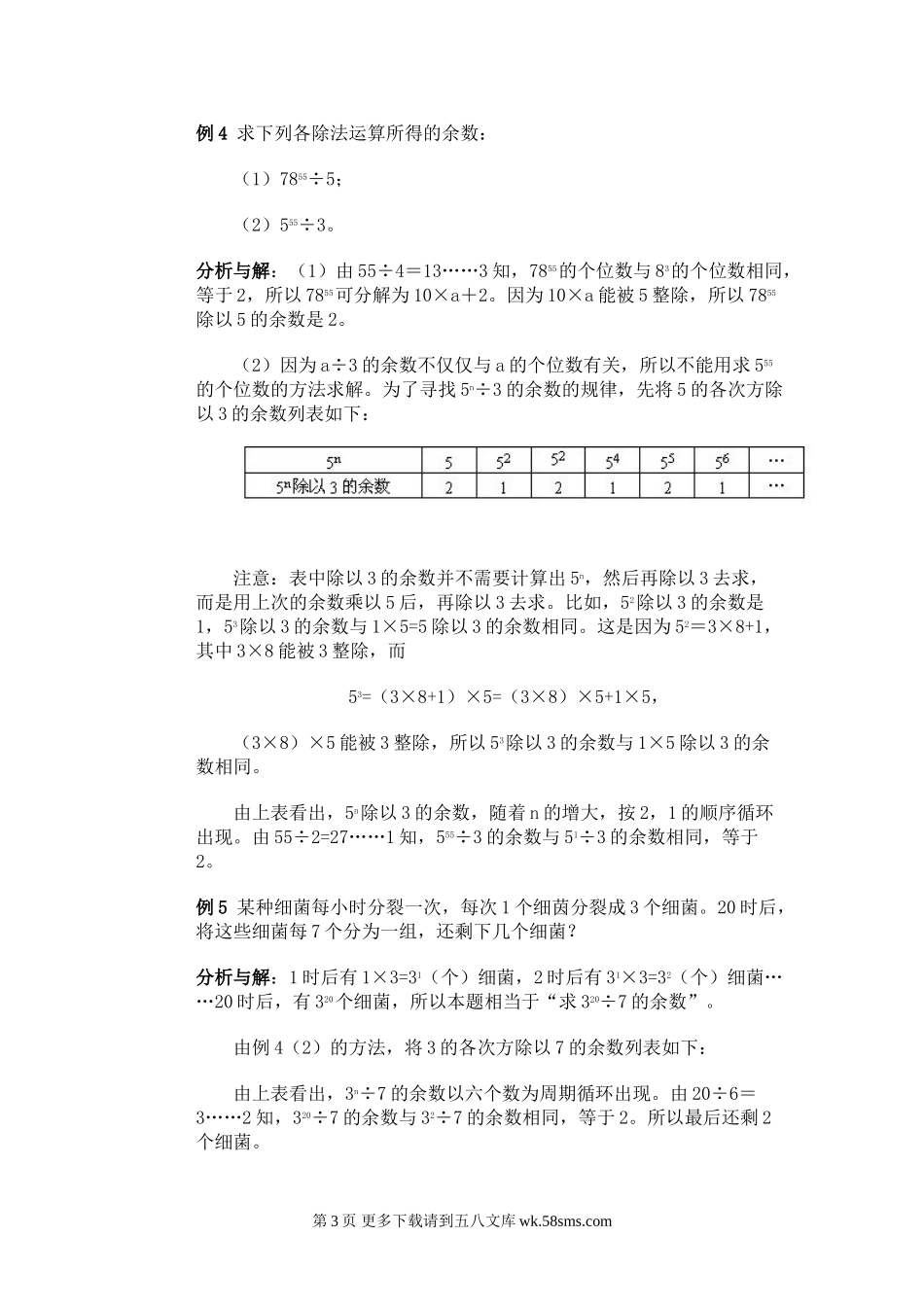 第8讲找规律(二)整数a与它本身的乘积,即a×a叫做这个数的平方,记作a2,即a2=a×a;同样,三个a的乘积叫做a的三次方,记作a3,即a3=a×a×a。一般地,n个a相乘,叫做a的n次方,记作an,即本讲主要讲an的个位...