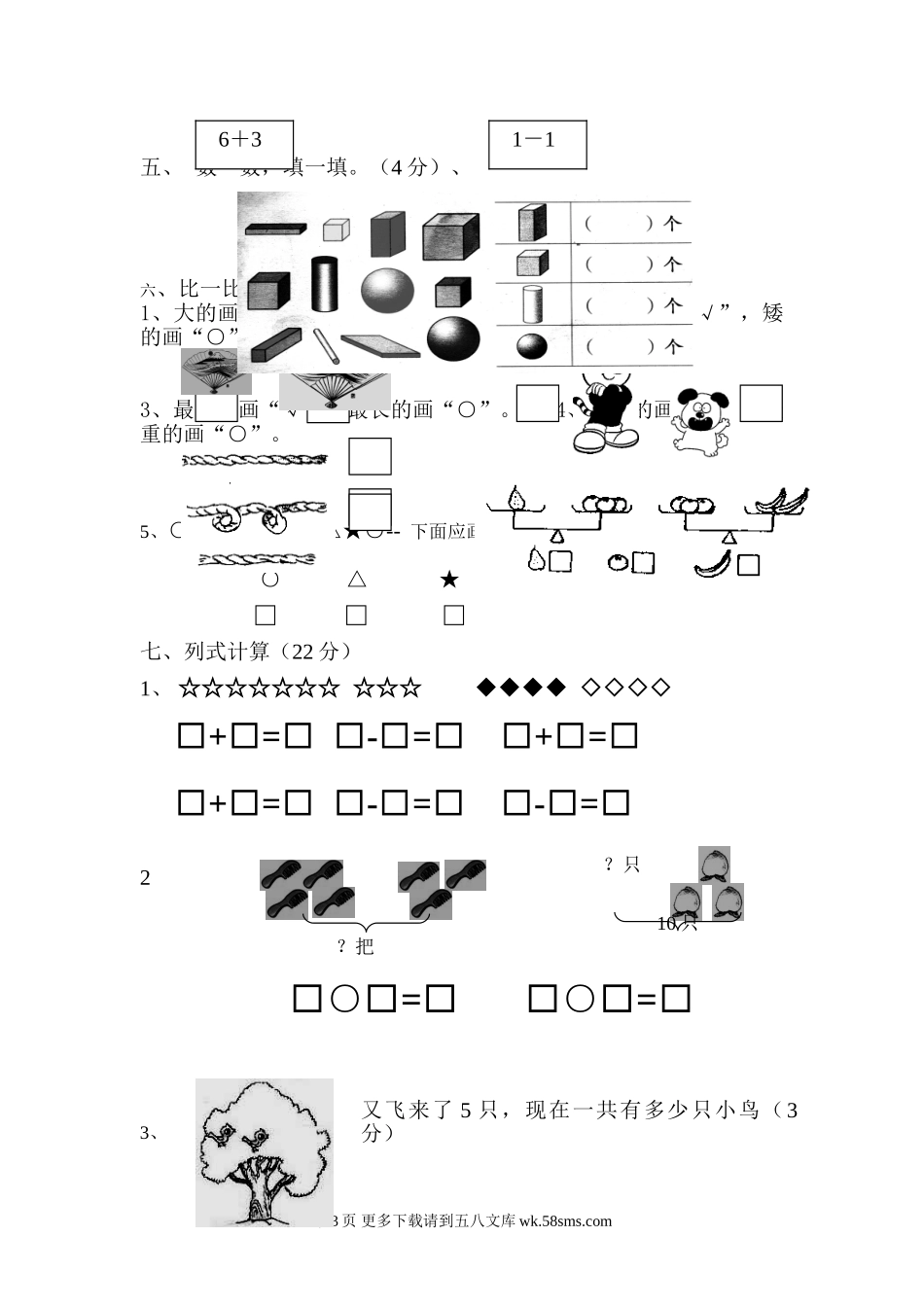 2016年一年级数学上册期未试题10套.doc_第3页